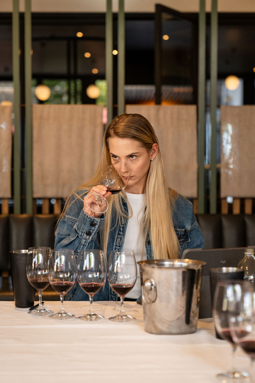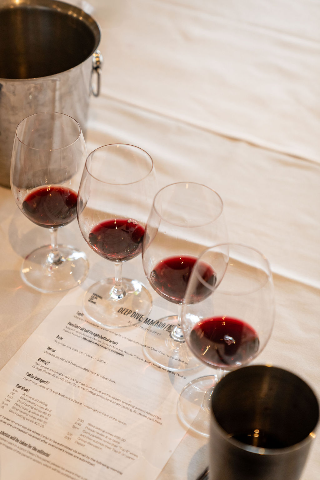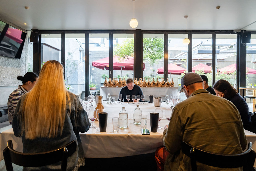 Our panel: Adam Foster, winemaker, Syrahmi; Sophie Melton, winemaker, Charles Melton Wines; Ciarán Hudson, winemaker, Beyond the Glass; Sophie O’Kane, head sommelier and venue manager, Julie Restaurant; Matt Froude, winemaker, Municipal; Kimberley Pearce, consultant, Wine Brain; Jarryd Menezes, sales representative, Alimentaria.