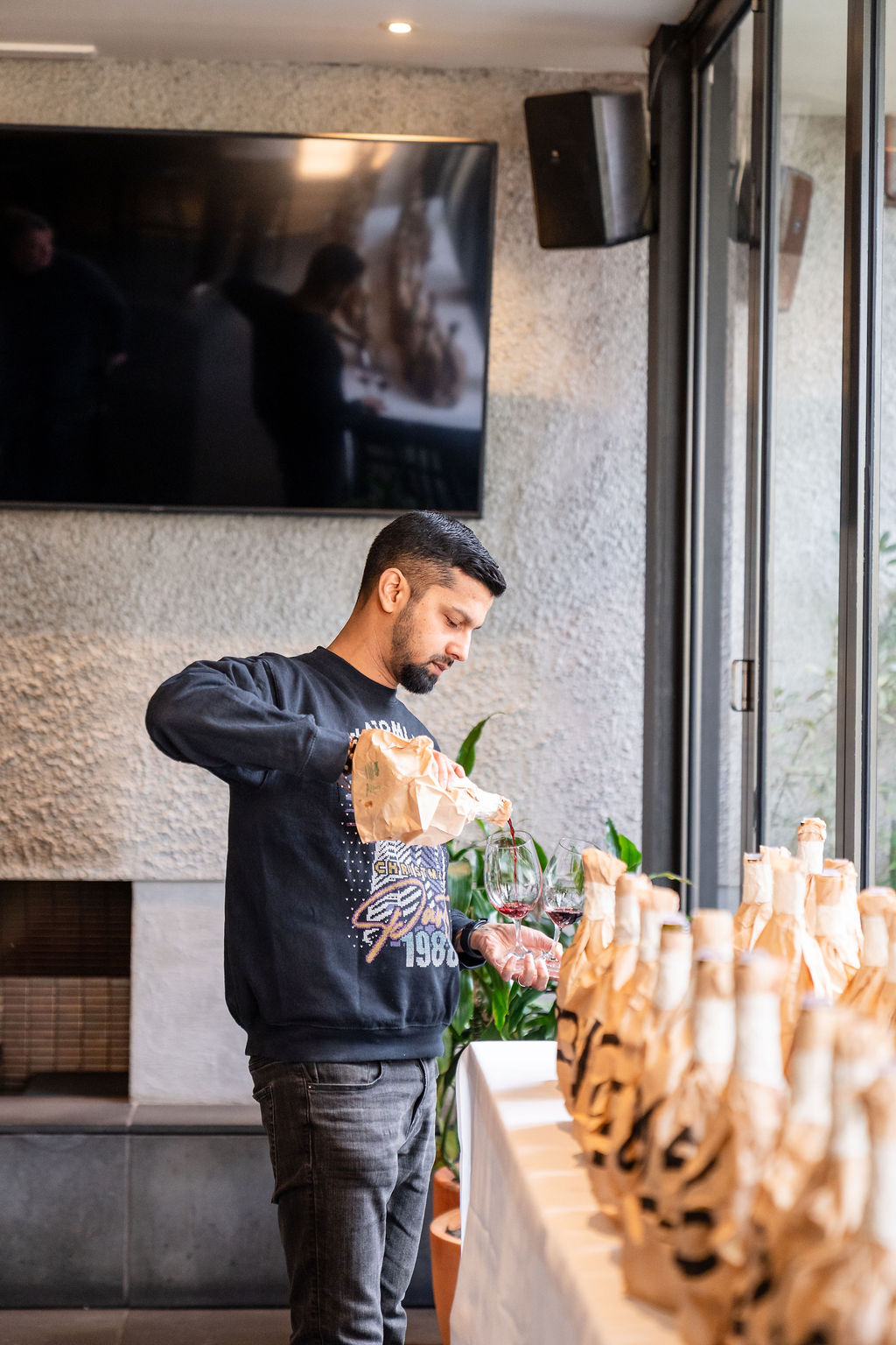 Opposite: Jarryd Menezes. Above: the tasting in progress at the Bleakhouse Hotel, Albert Park (Melbourne).
