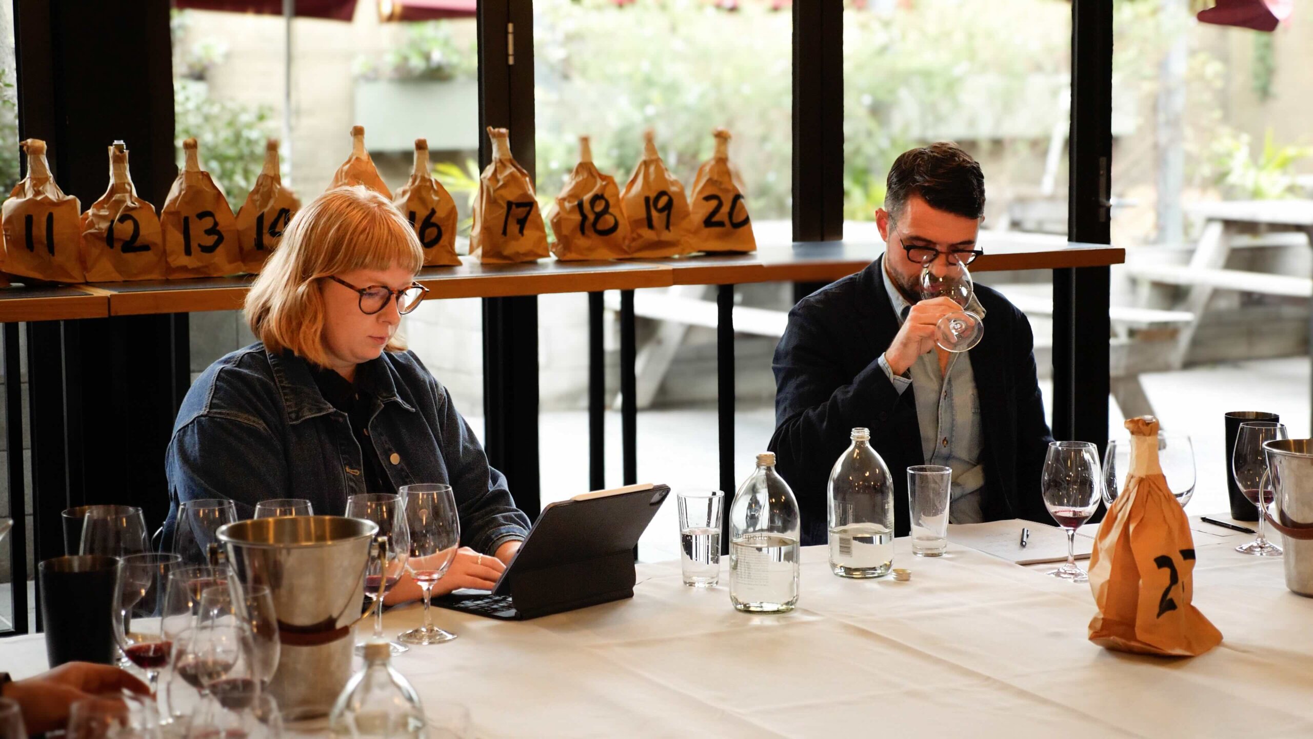 Above and opposite: All wines tasted ‘blind’, with palates cleansed thanks to Antipodes.