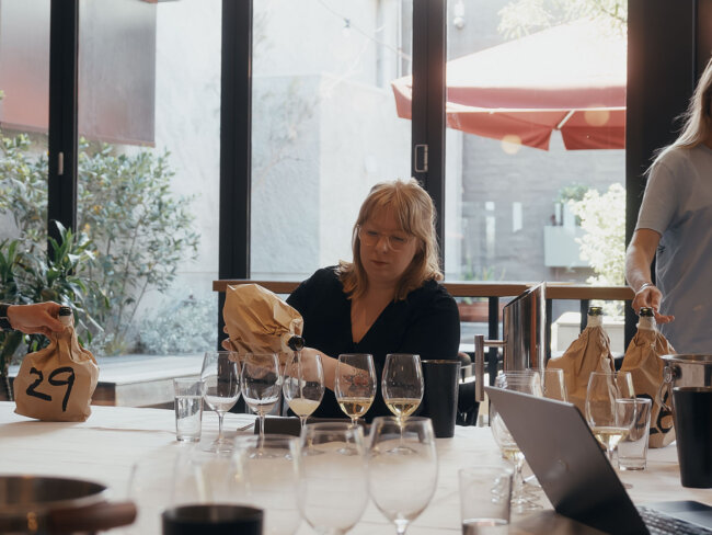 Our panel: Alex Meikle-Briggs, Head Sommelier, Grossi Restaurants; Iona Baker, Italian wine importer, Trembath & Taylor; Isabella Greco, Sommelier; James Scarcebrook, Vino Intrepido winemaker; Katarina Lange, Sommelier, Botanical Hotel; Luke Campbell, wine consultant, Vinified cellar management; Madeline Marson, winemaker, Vinea Marson; and Nick Lee, Gradi Group Sommelier.