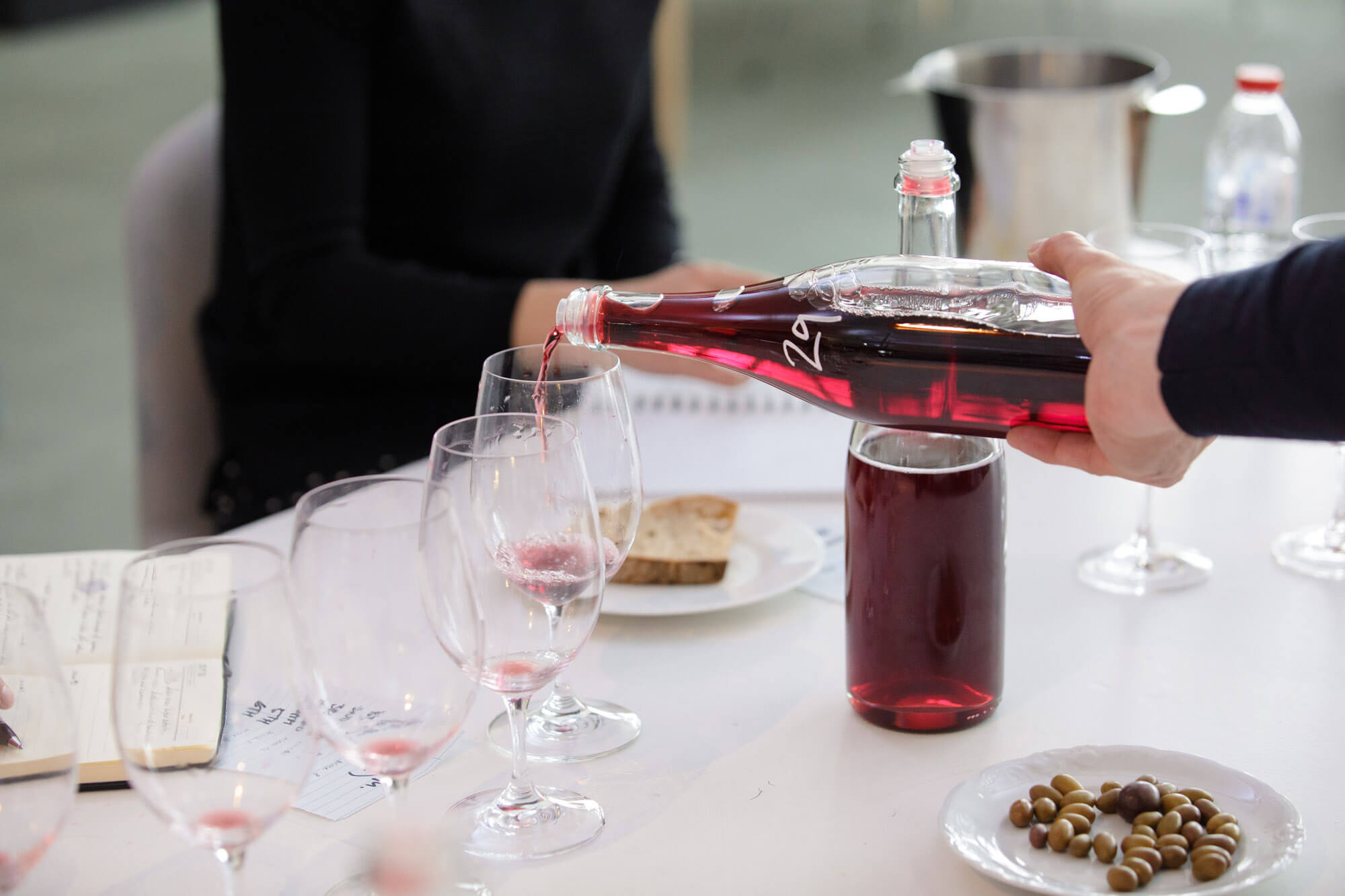 All wines were decanted into clear wine bottles, so as to not let bottle shape or closure type intrude on the appraisal. The wines were presented with no particular order to the wines. Once the initial tasting was completed, the panel re-tasted as they saw fit to confirm or recalibrate their first impressions, and to give those wines tasted first a chance to be properly compared to those tasted later. The identity of the wines was revealed after the panellists had disclosed their opinions.
