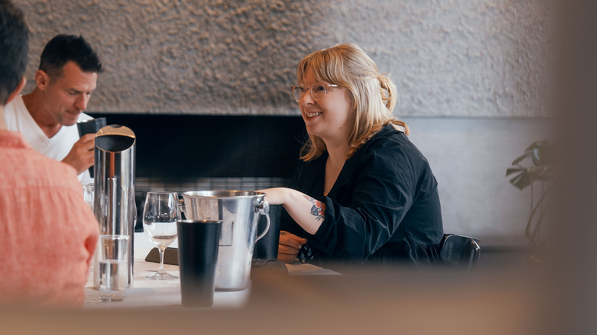 For Kaigg-Hoxley, the key to successfully pairing traditional-method sparkling wines throughout the course of a meal is understanding the differences in flavour profiles and acidity between blanc de noirs, blanc de blancs, and the traditional three-variety blends. “[Blanc de blancs] has more of that citrus and green apple. It translates more mushroom, and more of that ‘chalky’ cellar character. It can be more crystalline, and quite austere … Blanc de blancs classically has a lot of power, but is lighter,” she says. By contrast, “Blanc de noirs often has a slightly more hard to pin down profile for a lot of people – people say, ‘Yeah, you can taste the red fruit,’ but the strawberry doesn’t necessarily translate as ‘red fruit’ to everybody. Sometimes it translates as really sweet red apple. You can get mushroom, but it’s more of an umami quality. You can get more hazelnut characters as well from the interplay with lees, too.” With that understanding in place, pairing becomes significantly easier: “The classic rules of food and wine pairing that we use in still wines also apply to [sparkling wines] in a lot of ways. If you’ve got something that needs acidity, that needs that really fresh vibrant style, blanc de blancs is possibly your better call. If you need something with more texture and a little bit more richness and roundness on the palate in particular, a blanc de noirs is probably where you sit … classically, blanc de blancs would be my first point of call for your seafood and your lighter dishes, and blanc de noirs tends to take a little bit more consideration.” She adds, though, that “there’s a lot of variants within each of those categories” – so it’s best to be familiar with the characteristics of any given wine before pairing it.