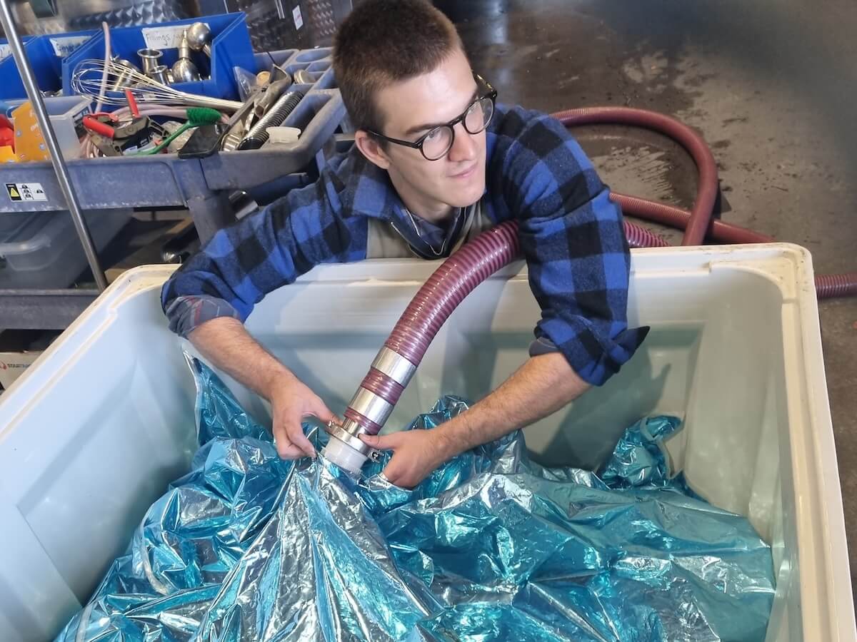 Avoiding lengthy lees ageing not only means that the resulting wine is lighter and fresher, but also makes its production significantly less expensive – an important consideration for a wine that is destined for the restaurant trade. “Earlier this year a restaurant approached us for a non-vintage project,” Henskens says. “And we thought, ‘That blanc de noirs is looking pretty spiffy’ … we did a trial disgorgement, and we all liked it – Kilian described it as ‘An absolute banger’!” The finished wine’s relative lightness on the spectrum of blanc de noirs abets its food-friendliness: “It’s something that will go with absolutely everything,” Henskens says. “We just wanted to play with that and keep that lightness to it, rather than making it something big and serious. It’s charming – and I think blanc de noirs can be particularly charming.”