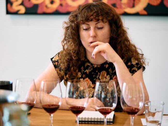 This carried the day for half the tasting panel, with Mills, Brodtman, Szyman and Day placing it at the top of their selections, while Andrew also included it amongst her top six. “On the nose, bunchy aromas with cherry, blood plum and hints of violet,” wrote Brodtman. “The aromas are beguiling, with complexing hints of green peppercorn and perfume that invite you in. The palate lives up to the expectation with crisp acidity and gripping, fine-lined tannins that fill your mouth. The fruit aromas are reflected on the palate with a touch of vanilla. This wine needs time to open up and is bloody delicious.” “This was the first wine of the day, but I still loved it at the end,” wrote Day. “Aromatic blueberry perfume on the nose; vibrant and bright. Plenty of evidence of carbonic maceration – rounded fruit, kirschy, morello cherries…. I want to drink this straight away! Maybe from a plastic cup. It’s bubbly and fun, it’s picnic wine.” Mills found it, “Fresh and appealing… energetic – like it a lot!” “This wine was an utter delight to drink,” added Szyman. “Bursting on the palate with jewel-like notes of pomegranate and redcurrants, ripe blackberries, and a savoury edge of pencil shavings and French vanilla bean. Tannins were crisp, like biting into a pink lady apple and the tart acidity gave the wine a moreish quality.”