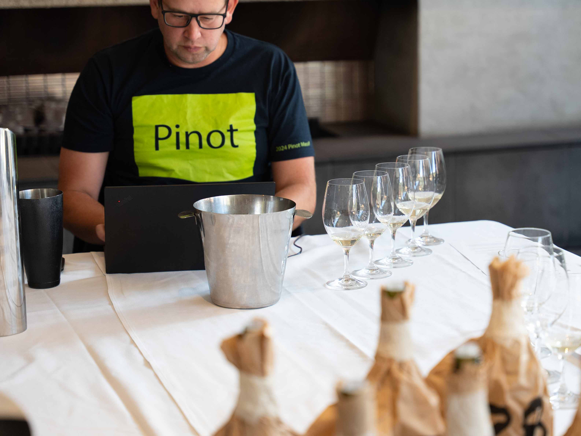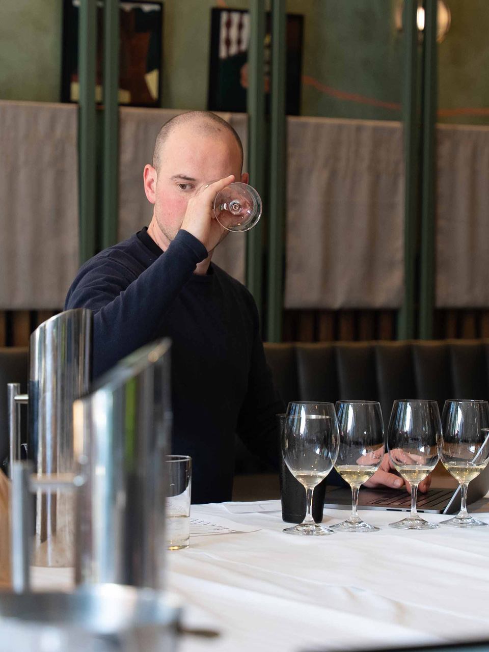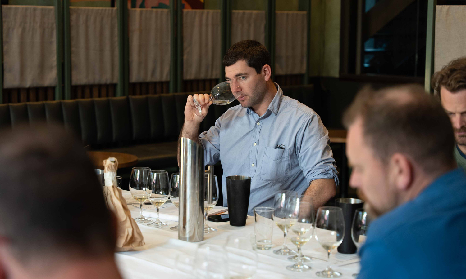 Above: The panel tasting in action at Bleakhouse Hotel, Albert Park (Melbourne). Opposite: All wines tasted ‘blind’.