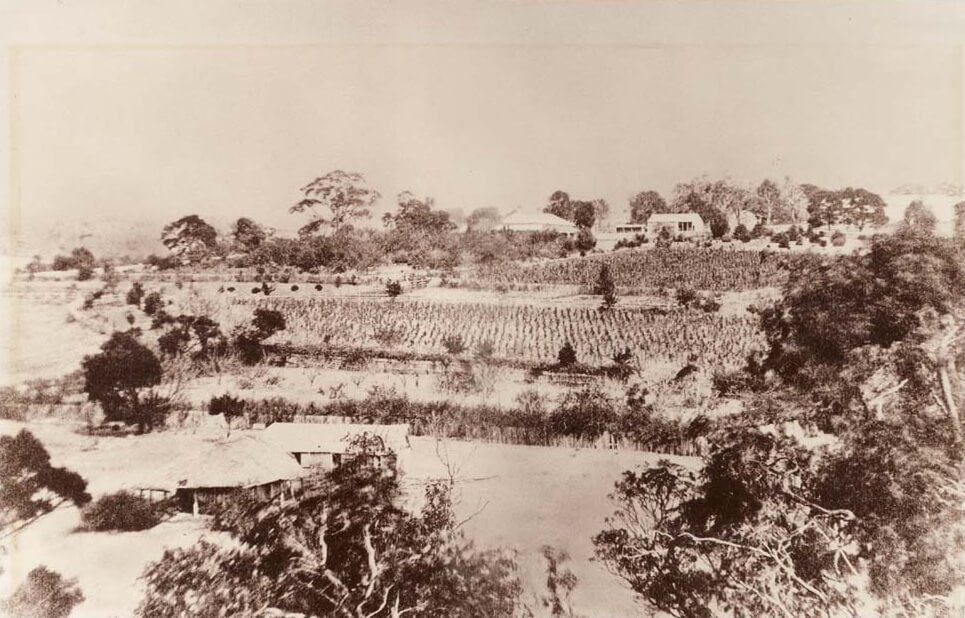 Above: Photograph of ‘The Briars’, likely to be the region’s first vineyard, circa 1870, with vines visible in background. Opposite: Pen drawing of Alexander Balcombe, owner of ‘The Briars’ and amateur winemaker whose attempts were called “Balcombe’s Vinegar” by locals, circa 1840.