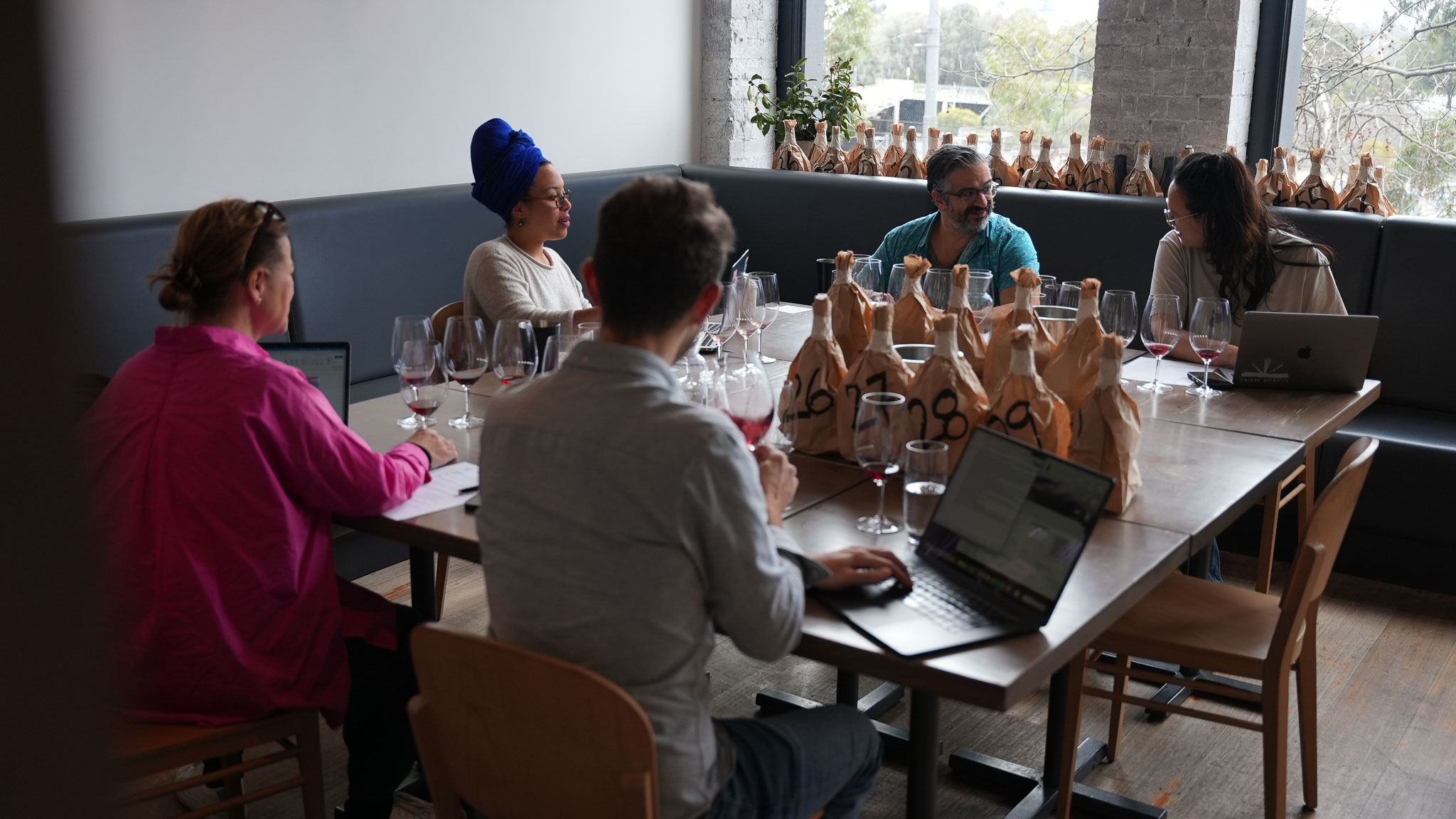 Our panel: Amelia Nolan, managing director and winemaker, Alkina; Tom Robertson, general manager, Alimentaria; Sophie O’Kane, head sommelier and venue manager, Julie Restaurant; Steve Kimonides, winemaker, Stelios Kimonides Wines and wine buyer, Rumi; Tais Silva Prades Villela, sommelier, Punch Lane.