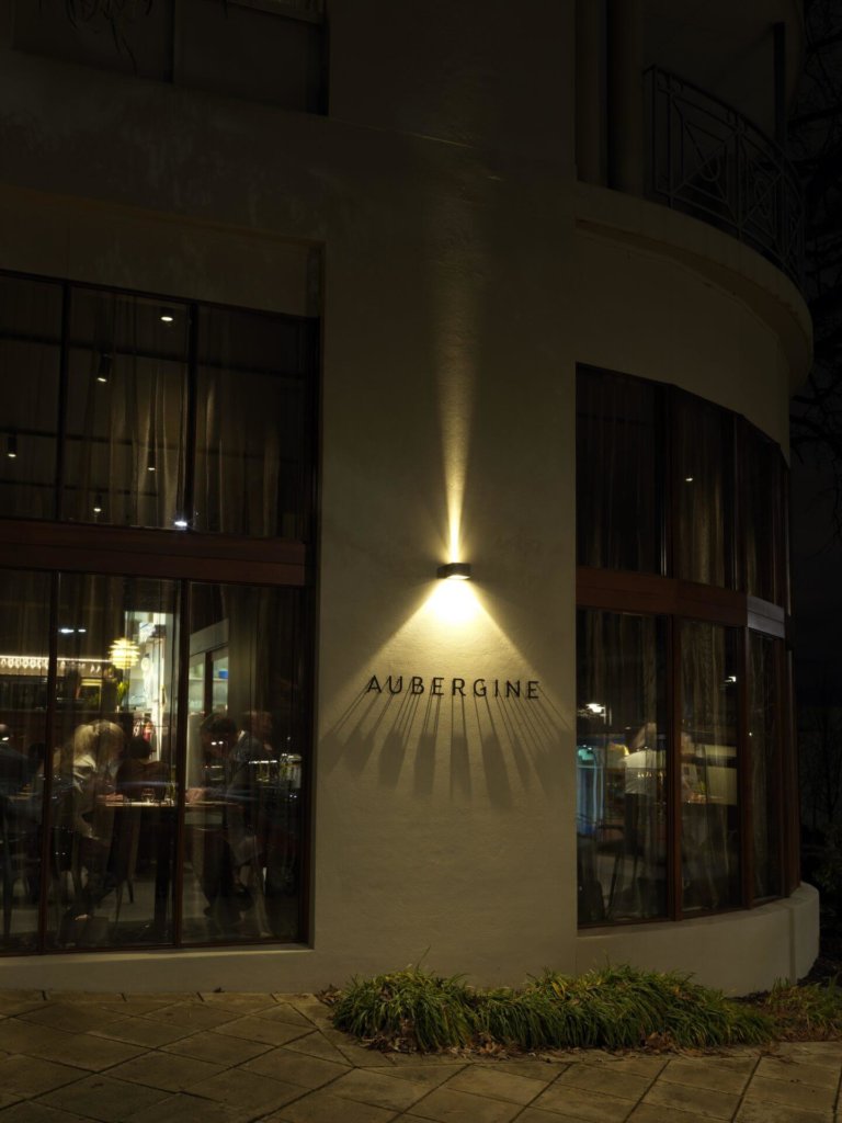 There’s nothing stuffy about Aubergine, just a cool refinement that runs right through it. Tablecloths surrender to the warmth of polished timber, dark walls and charcoal carpet cocoon, and the high-backed chairs of old have been replaced with a mid-century vibe, as has the cabinetry.