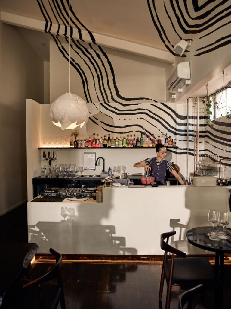 After falling in love with Byron Bay, James Audas and Tom Sheer initially decided to open a natural wine shop – Venue Luna Wine Store – but were then inspired by its instant success to also open a combined wine bar and restaurant, directly opposite the shop. The new venue, Bar Heather, which opened in 2022, drew inspiration from all of the owner’s favourite venues from around the world. Parisian bars were definitely an influence, but Bar Heather’s point of difference is its very particular focus.