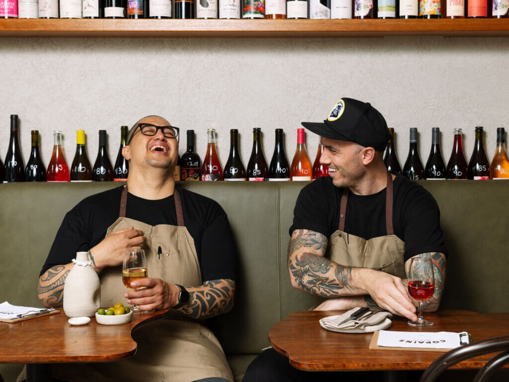 Chefs Nathan Sasi (Nomad, Mercado) and Morgan McGlone (Sunday, Belle’s Hot Chicken) became firm friends when their professional paths crossed in 2010, and had long harboured a dream to open a small wine bar together, to present bottles they had been squirreling away in their personal wine collections. Copains, which means “friends” in French, is the eventual 60-seat neighbourhood wine bar in Surry Hills they launched in 2023. “It’s a pretty simple concept; good snacks and good wine shared with good friends,” says Sasi.