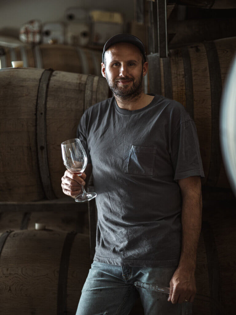 Having curated wine selections for elite Melbourne establishments like Grossi Florentino, Coda, Tonka, and King & Godfree, George McCullough developed a nuanced understanding of wine’s intrinsic link to gastronomy and terroir. His leap from an accomplished sommelier to a committed winemaker, from the dining room to the vineyard, underlines a profound commitment to the craft of wine. His intent with Gum Wine – launched in 2022, is to make fresh and savoury styles of wine, that are suited to food. The endeavour is centred on a vineyard in the Yarra Valley, but is complemented by wines sourced from Heathcote and Macedon vineyards. All wines are bottled unfined and unfiltered.
