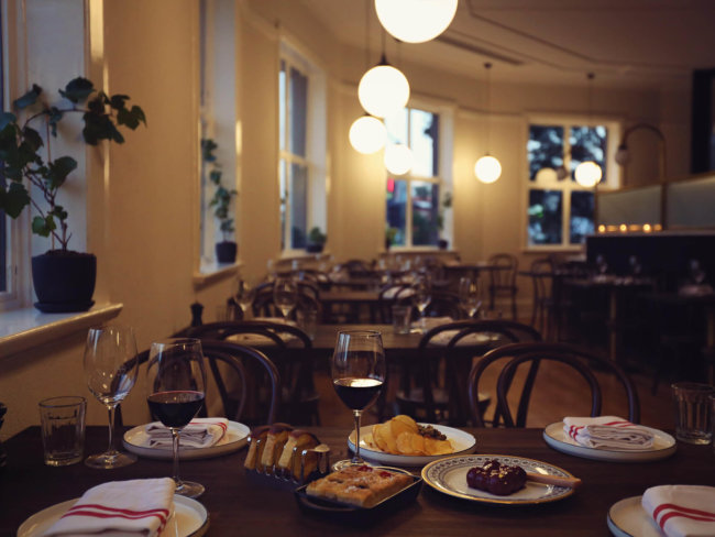 The 123-year-old Stewart and Hemmant building in Fortitude Valley has been restored to its former glory, now serving as a home to this elegant restaurant. The dining room resembles one you might have found there in 1898, yet with an assured air of modern sophistication. The short steps up into the long, narrow room immediately remove you from the street noise and into a classic space with charming European design. The (rosemary) green-accented interior, exposed heritage-listed brick walls and enclosed courtyard create an immediate warmth that sets the tone for the offering that ensues.