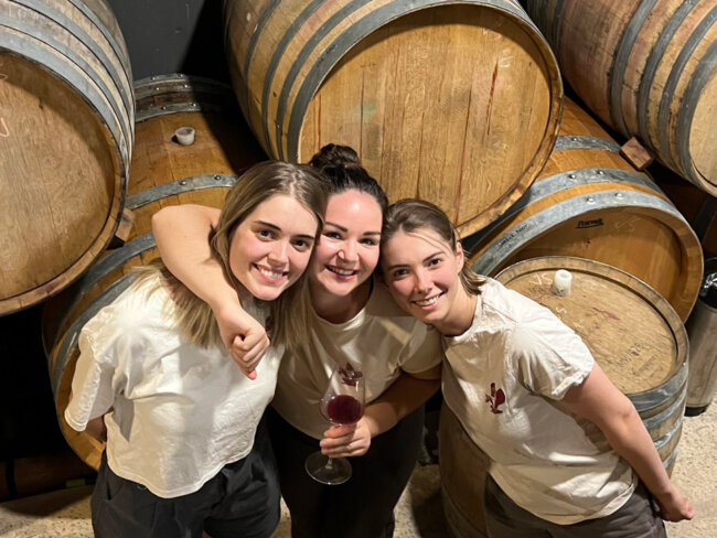 Foreign Friends’ wines are, as the name suggests, a celebration of friendship – not just friendship in general, but more specifically the friendship that blossomed after an Australian pair of sisters, Crystal and Leila Davis, met the French Juliette Menneteau in Beechworth in 2016. The trio’s collaborative label, founded in 2023, draws on each of their strengths: Leila’s as a winemaker (she currently works for Sentiō and Sorrenberg), Crystal’s as a marketer (her day job is in advertising), and Menneteau’s in wine distribution and sales (she currently works as sales and marketing manager for Australian wine importer and distributor World Wine Estates). Crafting a tight range of six wines – three whites made from savagnin, pinot blanc, and chardonnay respectively, plus a rosé from nebbiolo and reds from gamay and barbera – delivered in whip-smart packaging, Foreign Friends presents a vibrant, youthful, and approachable take on contemporary Australian wine. But don’t let the branding fool you – behind the laid-back odes to good times are three driven, ambitious women who are working hard to raise the profile of women in wine.
