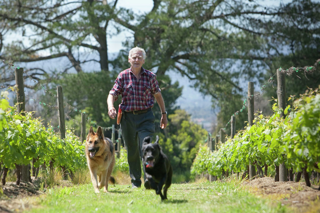 Opposite: Maryann Egan in the vineyard at Wantirna Estate. Above: Reg Egan, founder of Wantirna Estate.